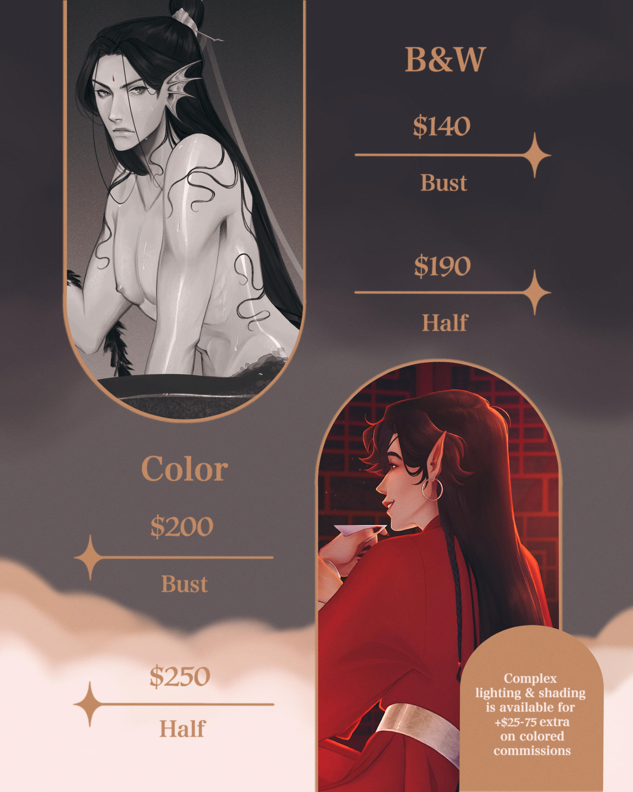 ✦ Background price ranges from $100-250 based on b&w vs colored, level of detail, and complexity